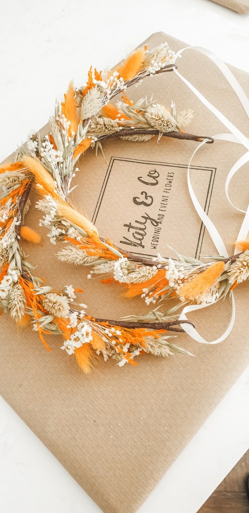 For the bride and adult bridesmaids, dried flower bouquets were the order of the day. I was so happy with how beautiful these bouquets were, dried flowers were medium I hadn’t worked with for a while and I loved every minute spent carefully crafting them by hand. The choice of dried flowers, including canary grass, bunny tails, pampas, dried cow parsley, and wheat, added a rustic charm to the bridal party’s attire. Each bouquet was a testament to the couple’s commitment to sustainability and their desire to create a wedding that left a minimal environmental footprint.