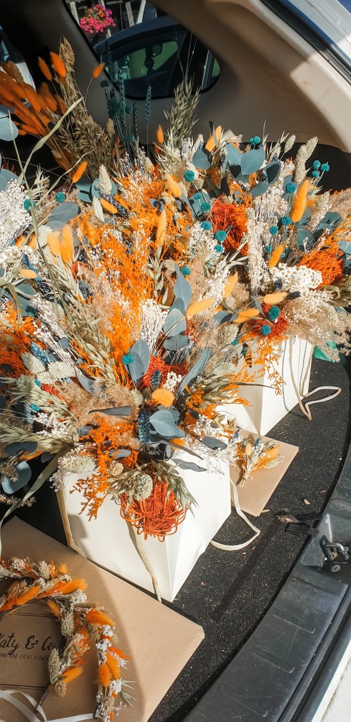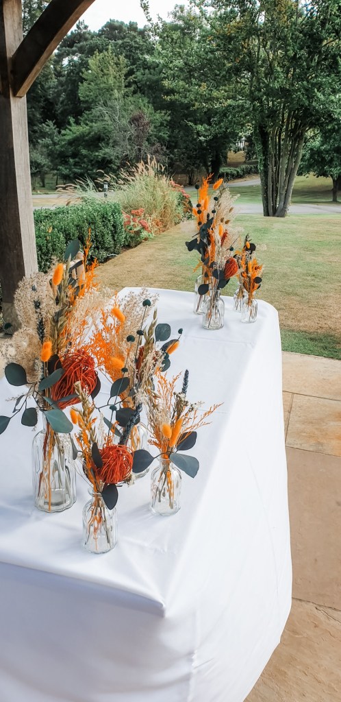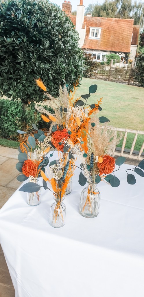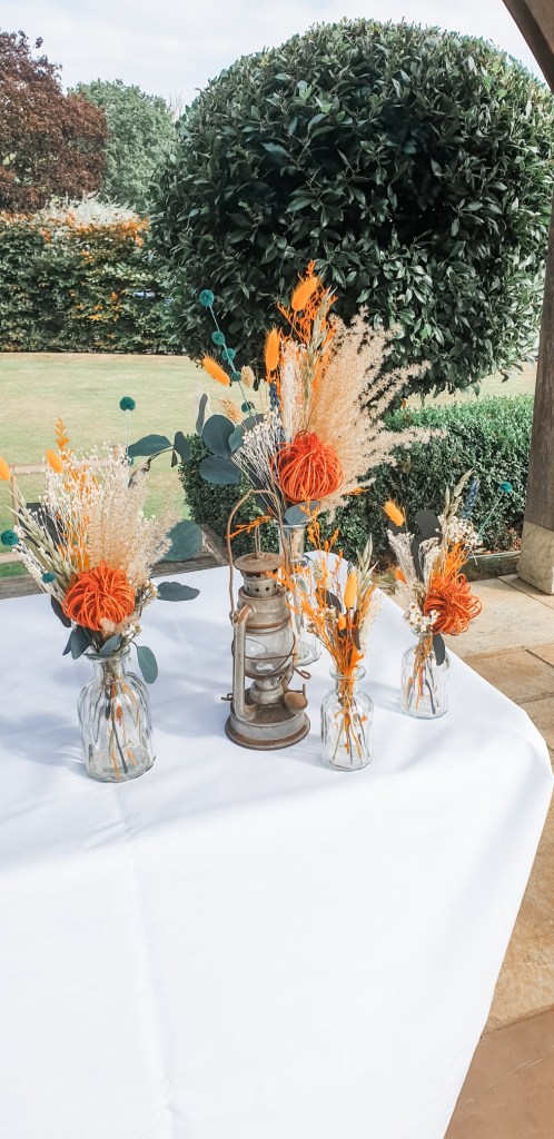 Beautiful Dried Flower Arrangements for a Stunning Wedding at The Warren Estate in Danbury, Essex